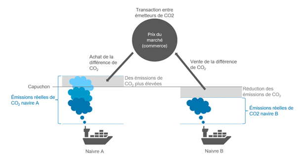 Les installations et les navires peuvent acheter et vendre des quotas entre eux. Le prix du carbone fournit une incitation économique pour que les installations réduisent leurs émissions. Les installations et les navires sont tenus de restituer suffisamment de quotas à la fin de chaque année pour couvrir leurs émissions. S'ils ne sont pas en mesure de restituer suffisamment de quotas, ils s'exposent à des pénalités.